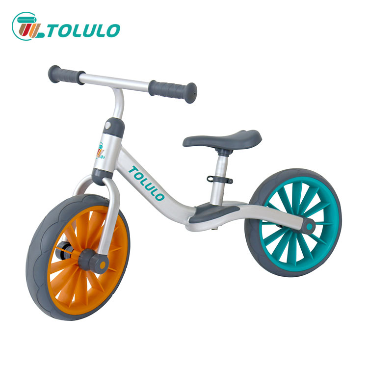 The baby balance bike is made of aluminum alloy, with high density, higher strength than other materials, light weight, strong resistance to fracture and air corrosion, the strider balance bike can be used for a longer time. The main frame of our kids' balance bikes is made of one-piece pouring, and the whole is smooth without welding, which is stronger and more durable.