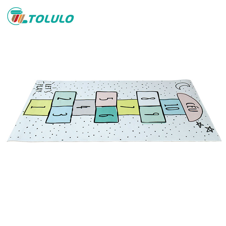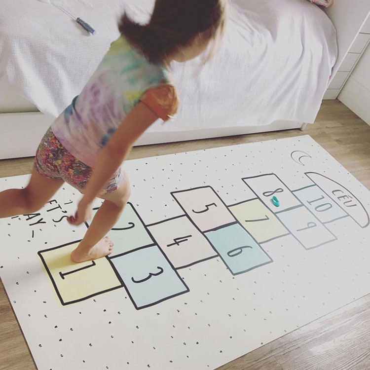 The kids rug features the classic hopscotch game for hours of jumping and counting entertainment. Adorn the rug to our home, we can play with our kids freely and happily, which build a harmonious family relationship. Through this mat, children can exercise their jumping ability, balance ability, coordination ability and reaction ability while playing.