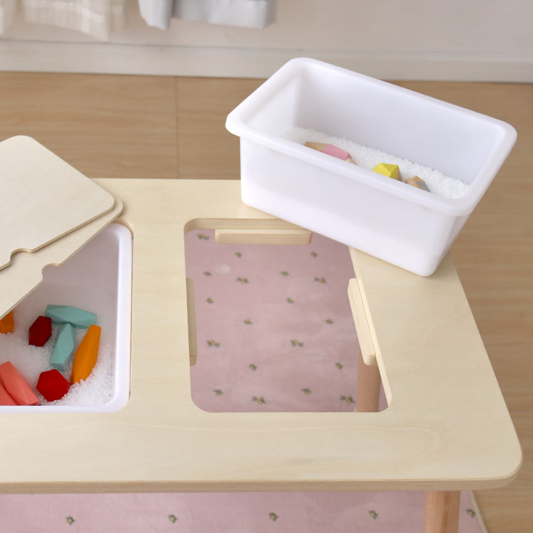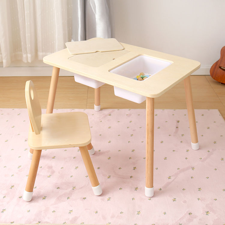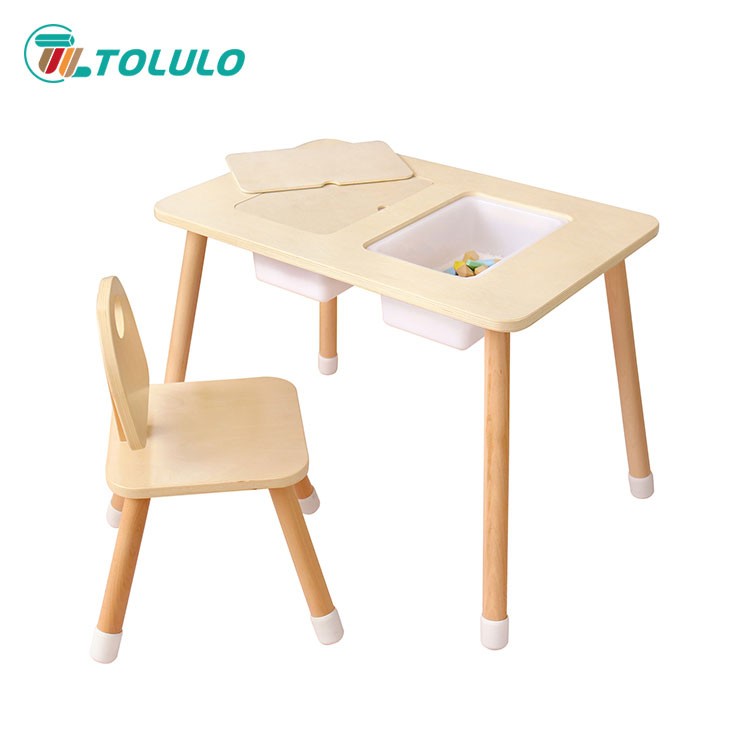 Kids Table Chair Set is multifunctional Nordic table and chair set, which is with three storage drawers, cover, plastic material transparent boxes. This model has enough space to store toys, learning material for children's play and study.